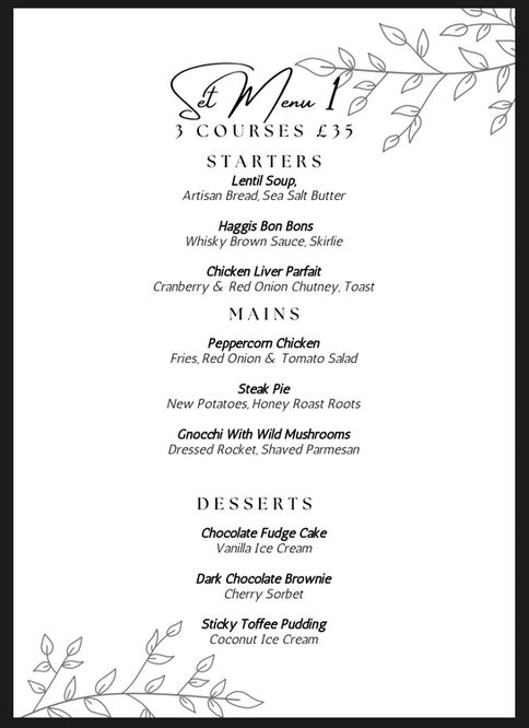 Event held at the Cricklewood Bothwell , price includes 3 course set meal